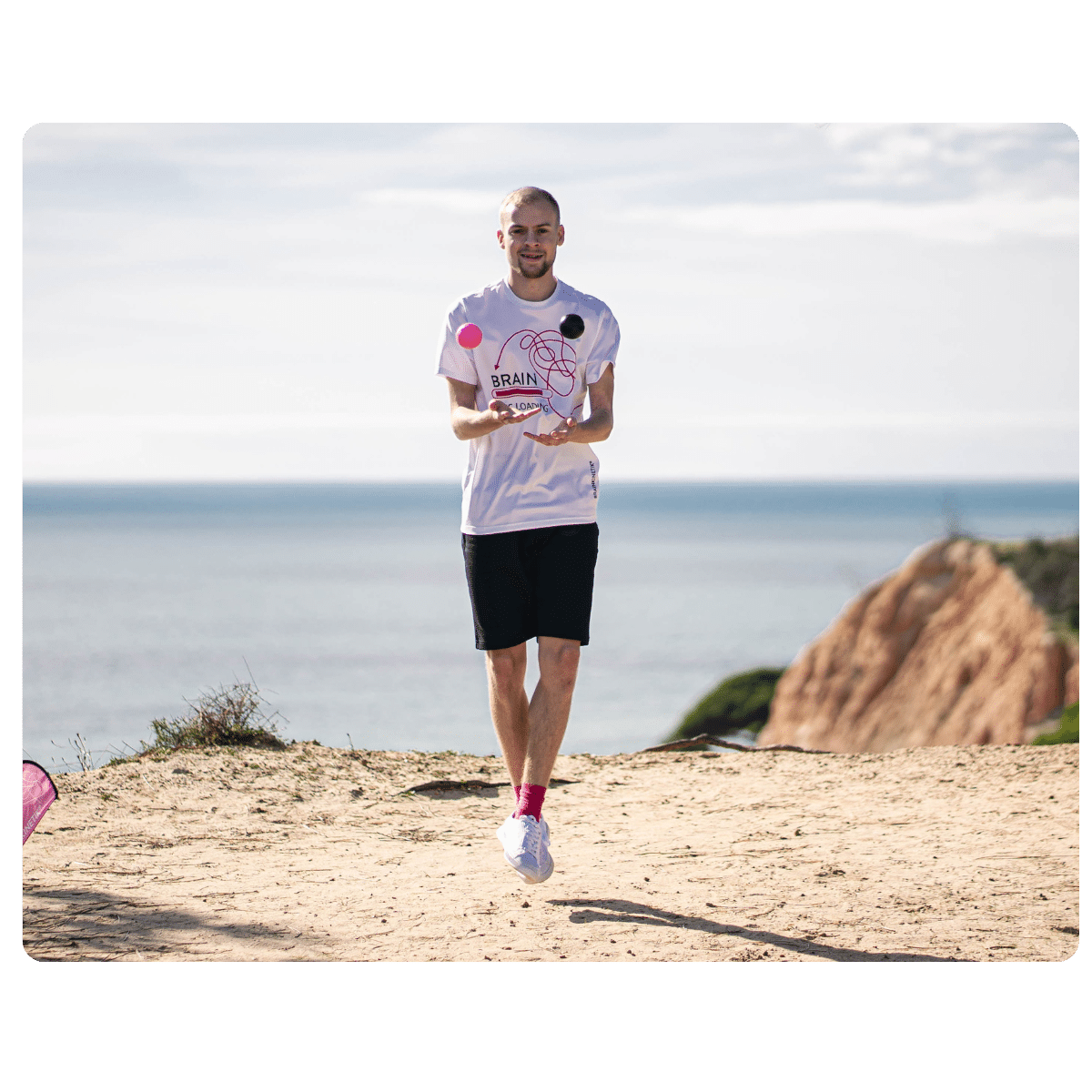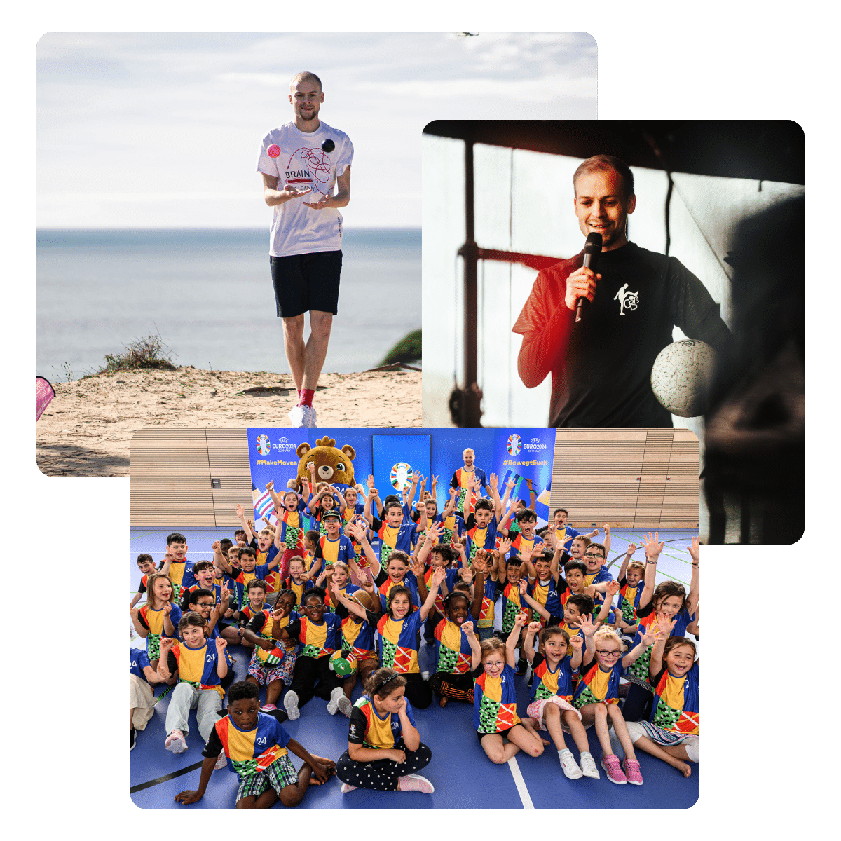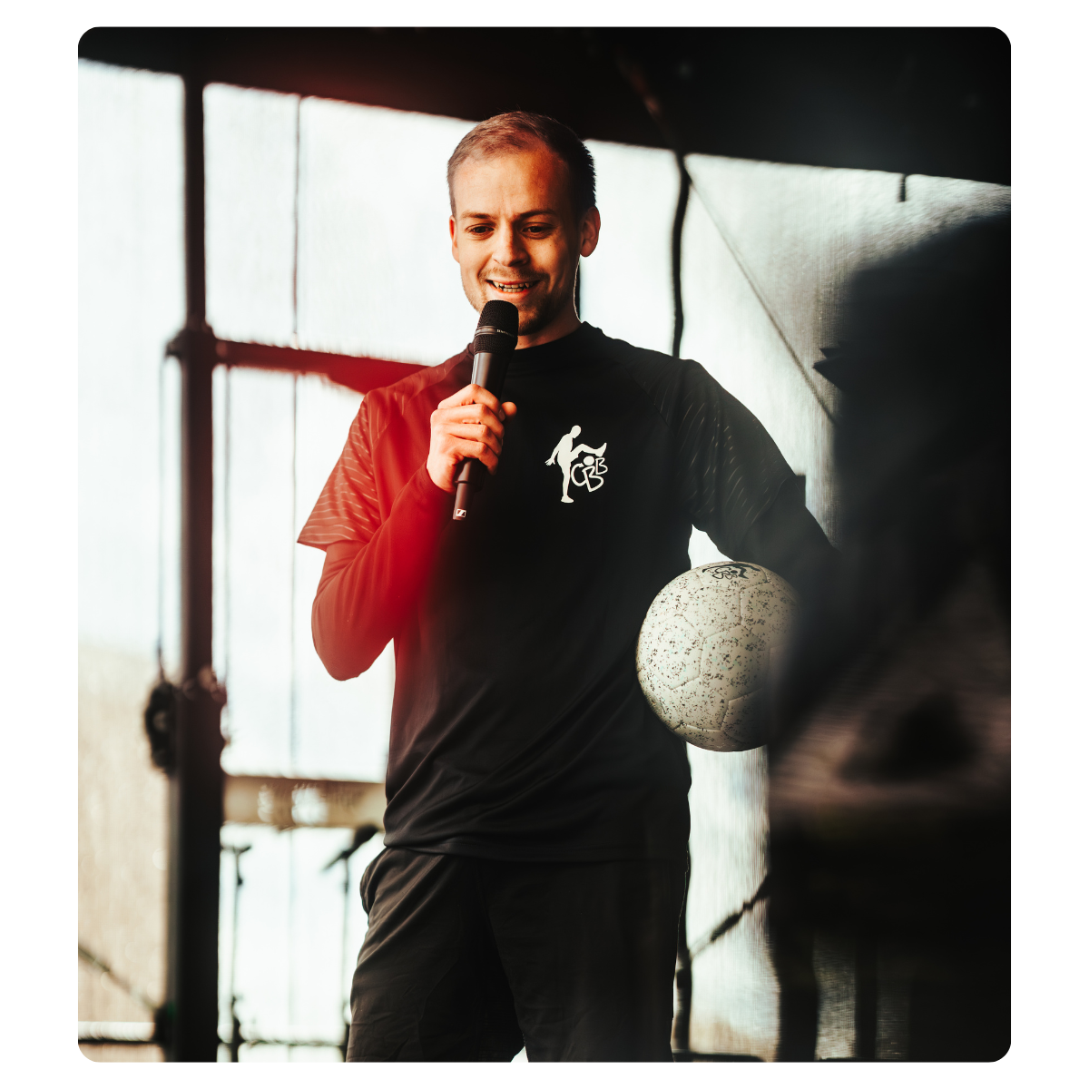 Chris bringt Bewegung, mentale Stärke und Motivation zusammen. Als deutscher Meister im Football Freestyle und Mitinhaber von BRAINKINETIK®, der Methode für bewusste Bewegung und Gehirnaktivierung.